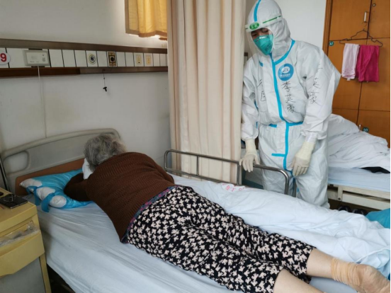 进驻市东医院后,医疗队面临的任务更为艰巨。上海市东医院作为新冠肺炎救治临时定点医院之一,80岁以上老人很多,大部分没有陪护且生活不能自理,无疑增加了救治工作难度。但他坚信“困难总比办法多”,担起第三大组组长的责任,带领队员以最积极乐观的态度面对患者。