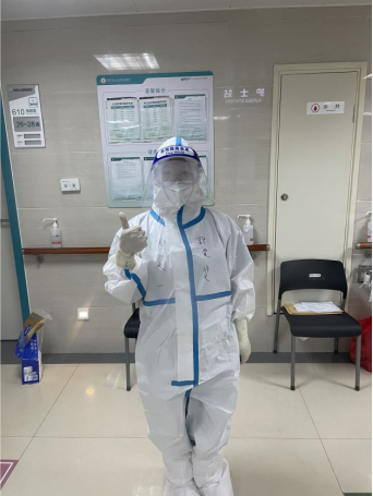 2022年4月2日晚,郭雯斐接到护士长紧急通知:支援上海。她立即回复:我参加抗疫工作。简单沟通后,紧急赶往医院参加培训。4月3日下午到达上海,医院立即组织岗前培训及理论考核,4月8日接管张江方舱医院,看着病人的病情慢慢恢复,到最后关舱,将近一个月的付出都是值得的。5月2日又接管上海新冠救治定点医院老年医学中心。开始新的使命,这次的病人都是以老年人为主,部分不能自理,需要鼻饲、喂水、翻身扣背、输液、导尿、插胃管等。经过大家的不懈努力,病人都在慢慢恢复,脸上露出久违的笑容,那一刻,她明白,所有的付出,病人都记在了心里。